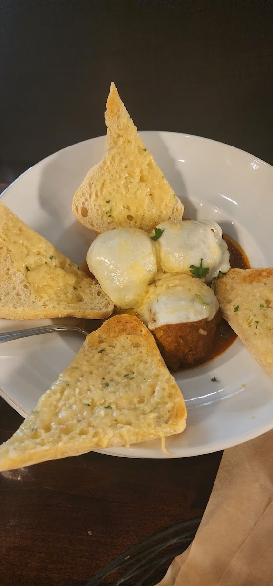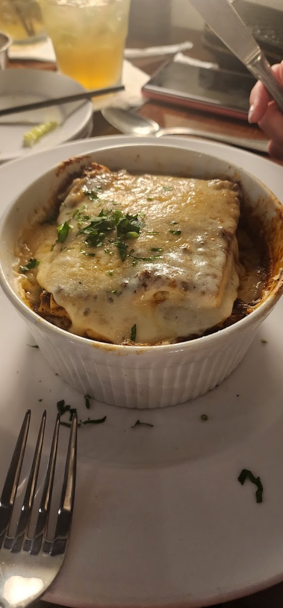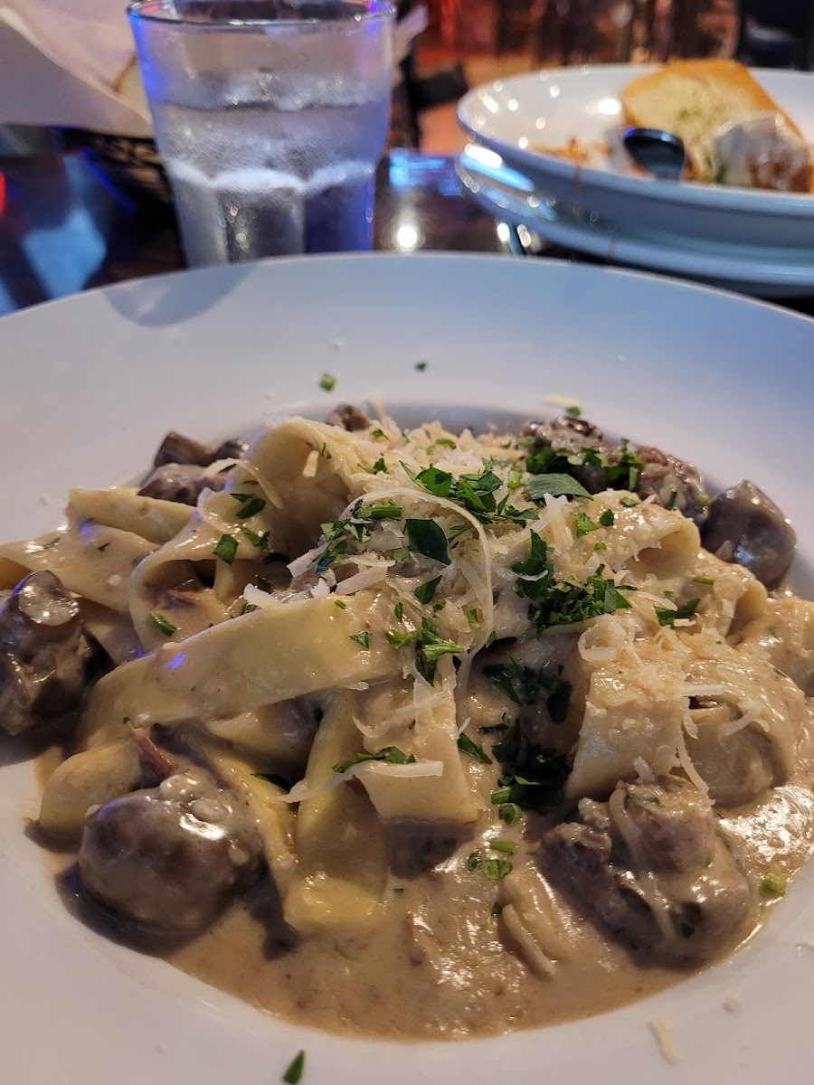 With full honesty, some items were a miss but overall I had a really good visit! Great atmosphere and definitely the type of restaurant where people go to celebrate birthdays. The calamari was flavorful and I’ve never had calamari served like chicken tenders haha. The bread and butter was delicious!! I really enjoyed the cocktails, on the menu it did not list the price but they were $12 each. The fries they had were kinda like in n out fries but more fluffy. Two thing I would not order again was the minestrone soup and the beef stroganoff. The minestrone was overpriced and not very good. The stroganoff was a bit bland and just not worth $30.