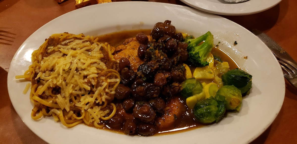 The food is awesome! This restaurant is really clean and the staff is so friendly. There are many choices to select from, you will not be disappointed dining at the Brick House. I ordered the family style meals to go for 3. There was so much food that came with this deal. My choices were house salad, minestrone soup, eggplant parmesan, rotini with meat sauce veggies, sourdough bread and garlic butter, The cost was reasonable for 3, approximately $52. All the dishes were awesome, huge servings, and so yummy. You will not go wrong ordering this meal deal.